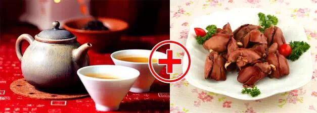 鸡肝中铁含量多,茶水中含有单宁酸,吃鸡肝时喝茶,会降低人体对铁吸收。